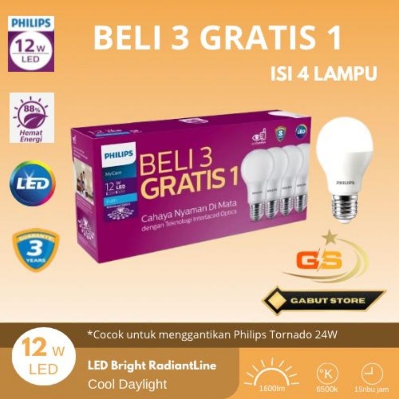 lampu Philips LED 12 wat terima beli 3 gerati 1 lagi promo produk original LED Philips