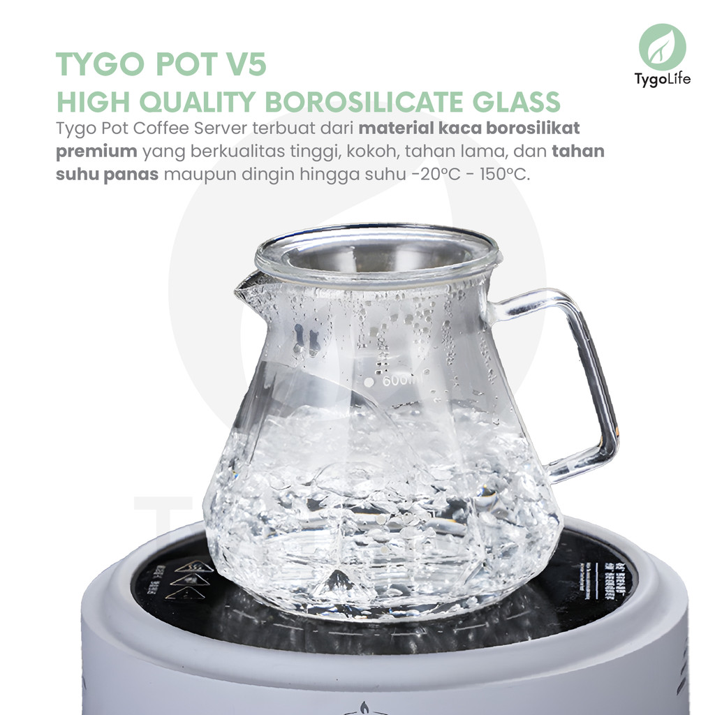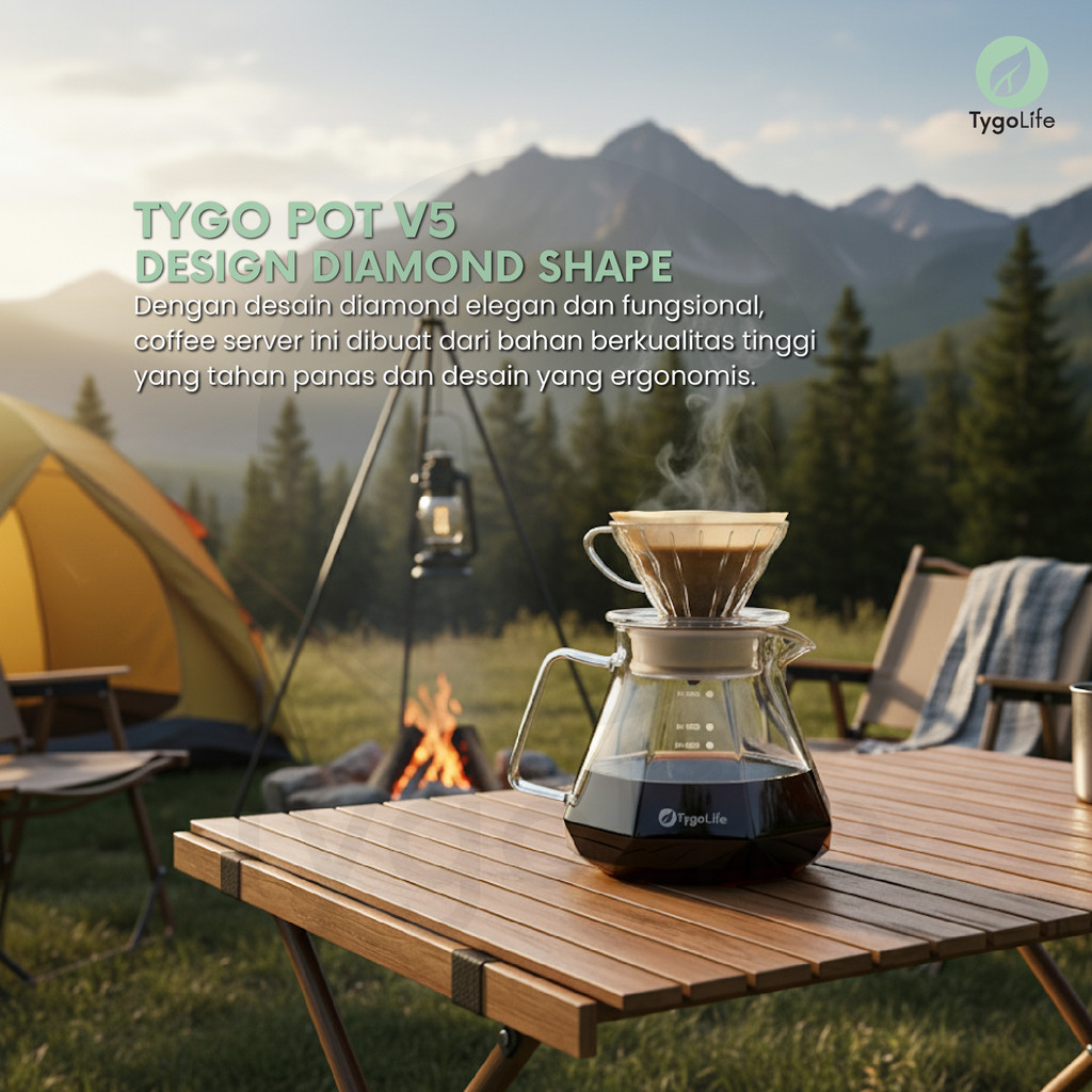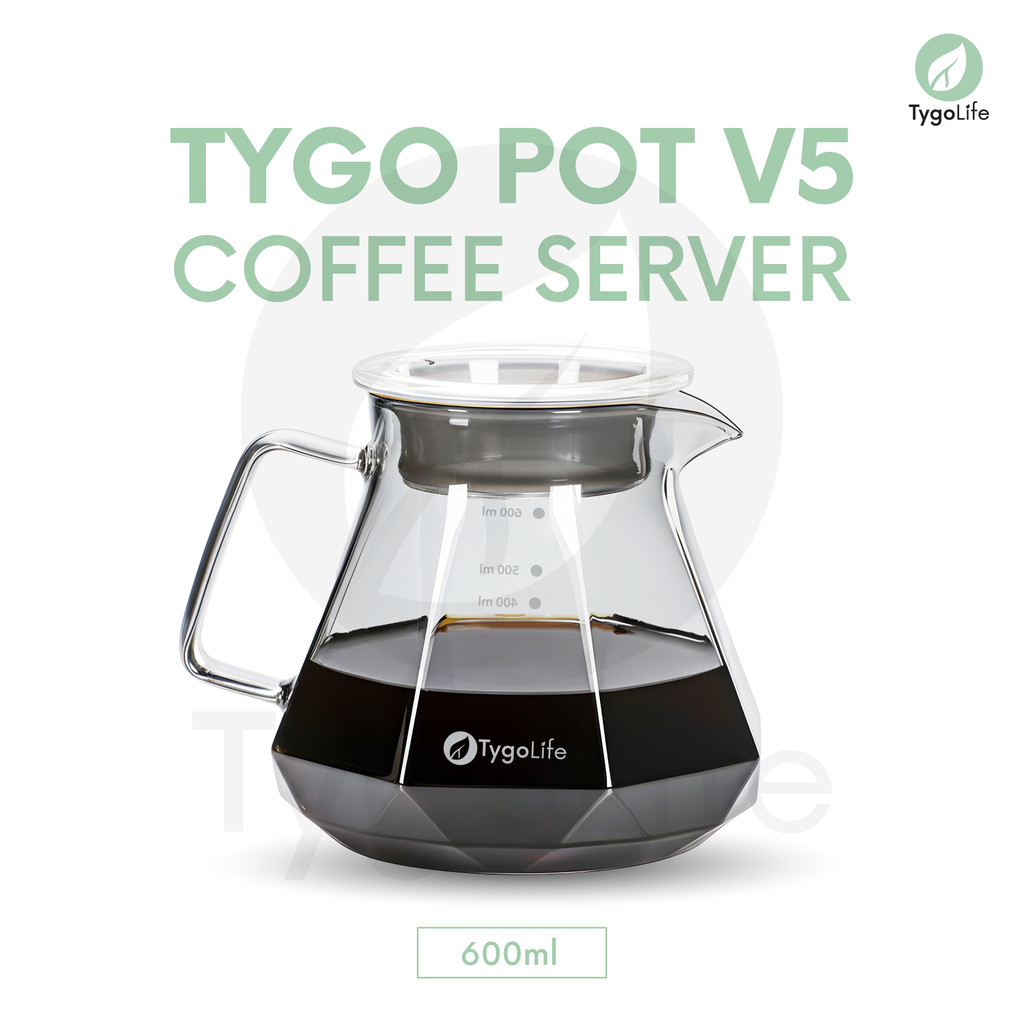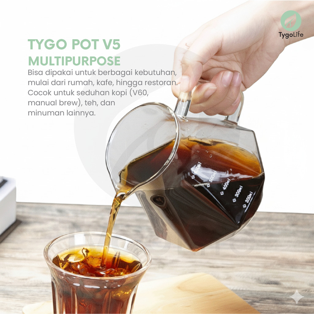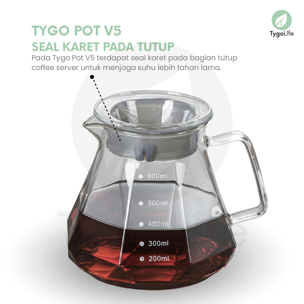 TYGO POT V5 COFFEE SERVER POUR OVER V60 DRIP BOROSILICATE GLASS DIAMOND SHAPE TEKO TAHAN PANAS SERVER KOPI KACA 600ML ALAT SEDUH MANUAL BREW PITCHER TUTUP KARET