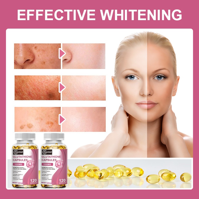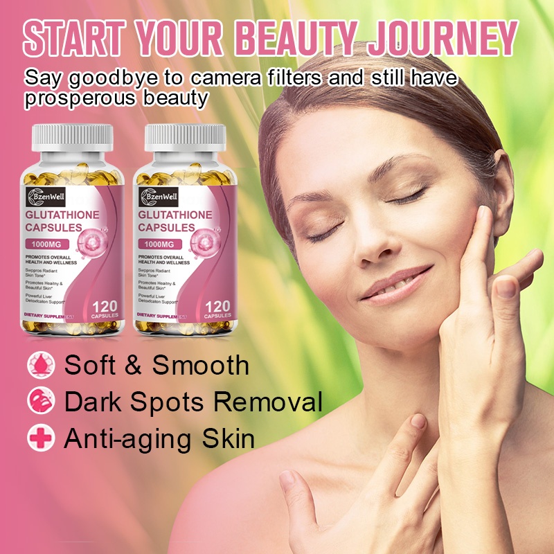 BzenWell Glutathione Capsules Whitening 1000MG Promotes Skin Heaitny Smooth Powerful Liver Detoxfcaton Support Dark Spots Removal Anti-aging Whitening 120pcs