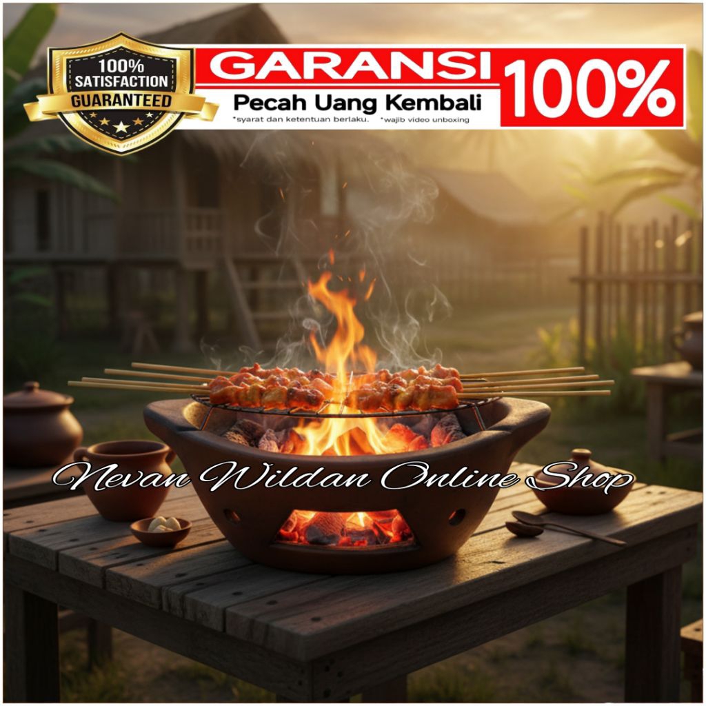 ANGLO SATE GERABAH TANAH LIAT | BAKARAN SATE TANAH LIAT OVAL | PANGGANGAN SATE TANAH LIAT