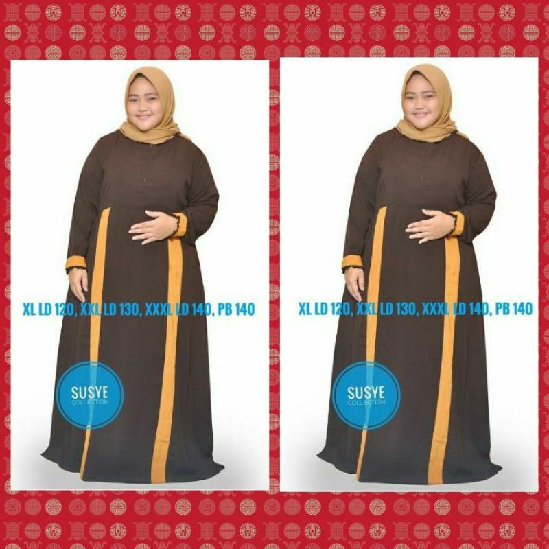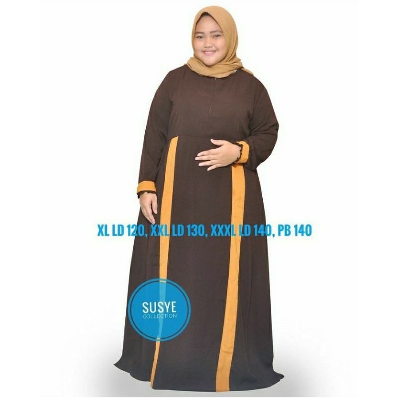 [COD] Baju Gamis Jumbo LD 130 LD 140 LD 150 Wolly Listy Kuning