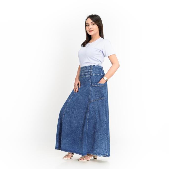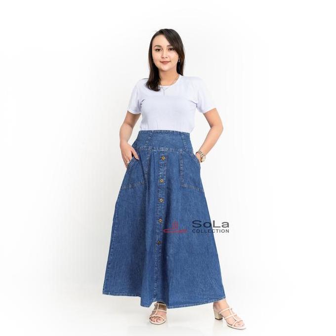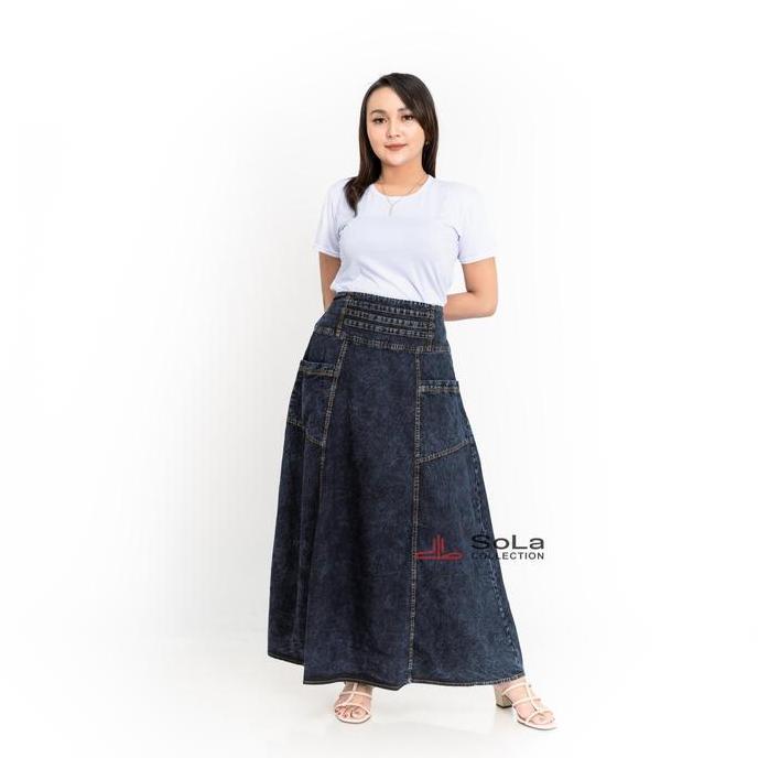 SOLA - ROK SNOW JUMBO BAHAN JEANS PREMIUM Wanita Panjang Hitam Denim Dewasa