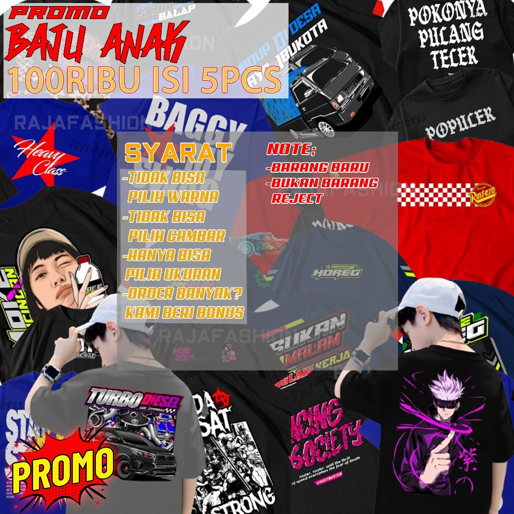 PROMO PAKET 5 PCS 100RB kaos anak / kaos distro anak UMUR 4 - 15 TAHUN /kaos anak keren/5 pcs 100 rb /kaos pria/kaos anak laki - laki