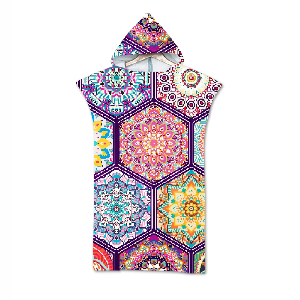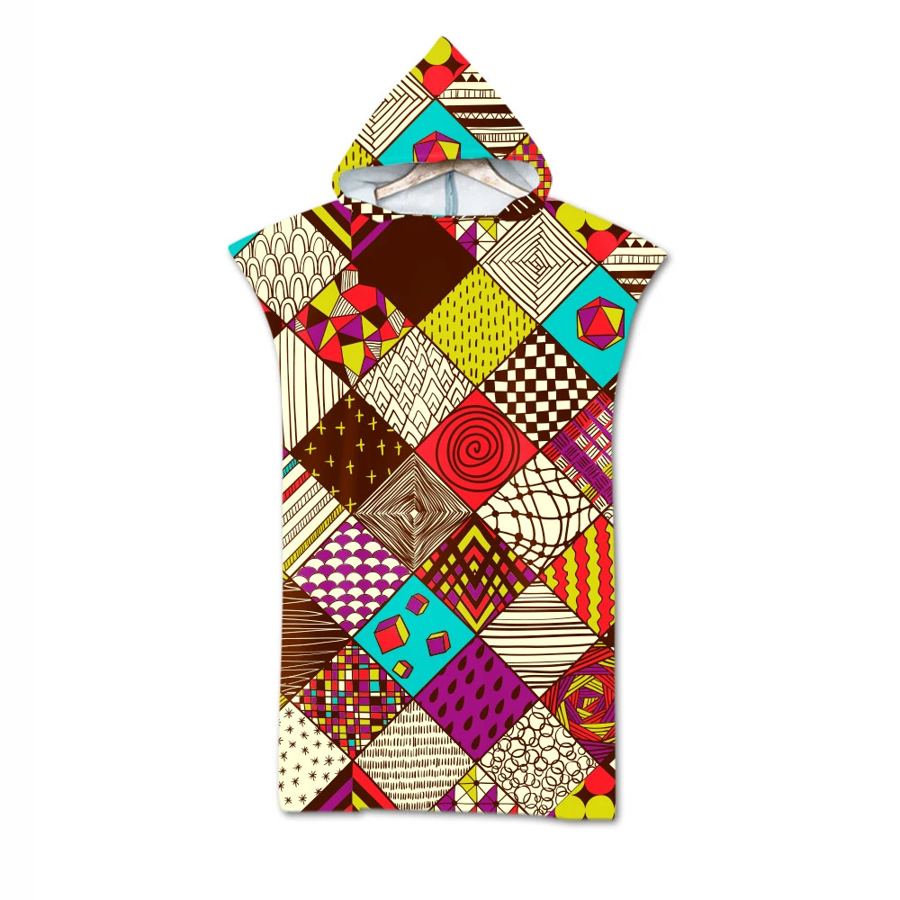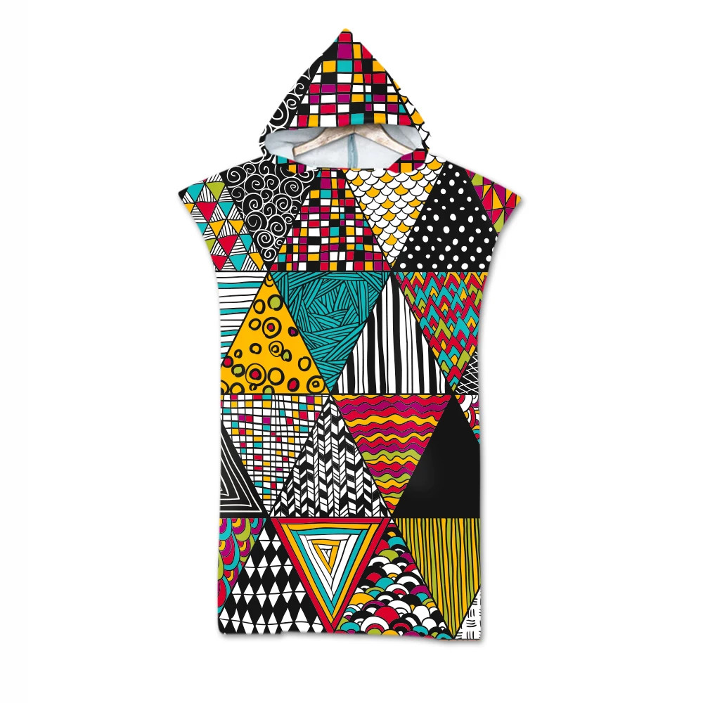 Geometric Printed Microfiber Bath Beach Towel with Hood Hooded Robe Poncho for Swimming Beach Surf
