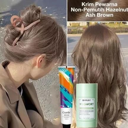 Ready Stock10 Warn Pewarna Rambut Bebas Amonia Cat Rambut Ash Brown Ash Blue Ash Grey Hair Color Pewarna Tanpa Bleaching Herbal Cat Rambut Milk Tea Brown Permanent Hazelnut Pink Brown Bleaching Rambut