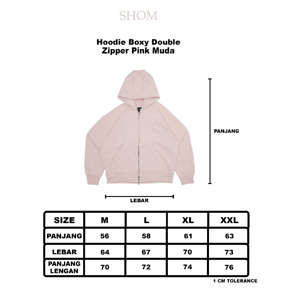 SHOM.CO I Hoodie Boxy Double Zipper Pink Muda I Pria Wanita I Fleece Cotton 400gsm