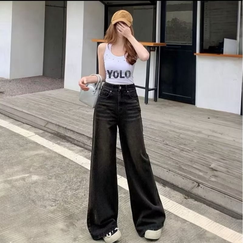 Baggy Jeans - Celana Jeans Wanita Beggy pants Hitam Retro Terbaru - Celana Baggy Jeans Retro Gombrong Reguler Loose Wanita Kekinian Panjang