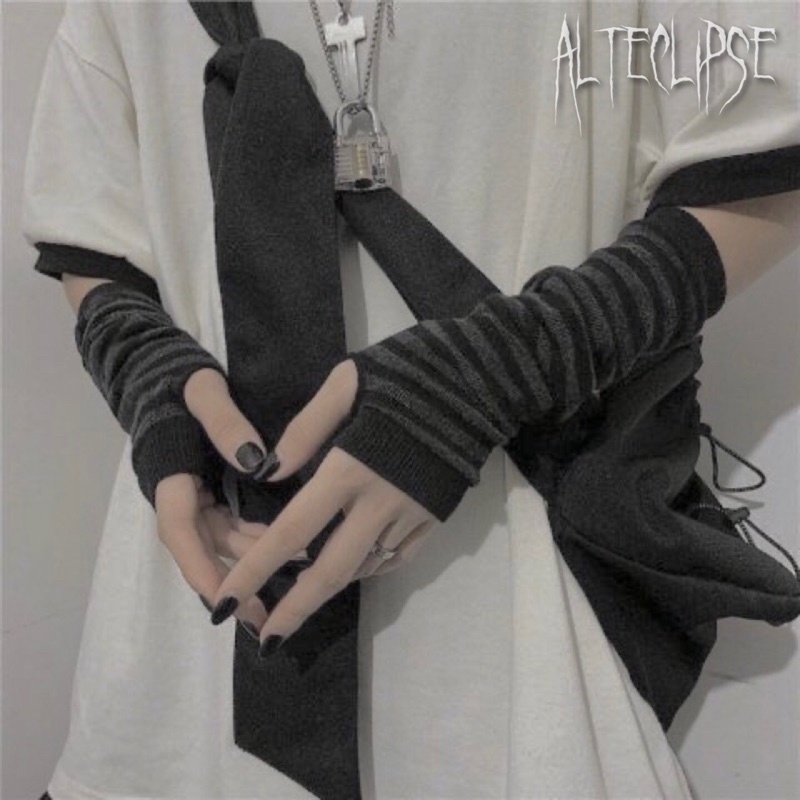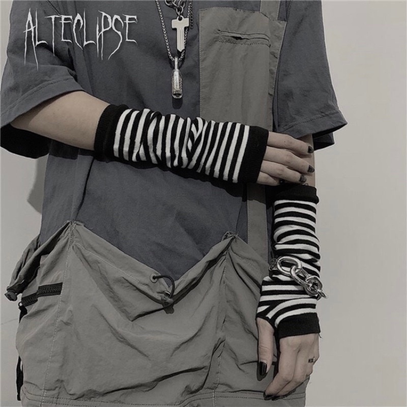 alteclipse gloves sarung tangan fingerless alt goth stripes gloves