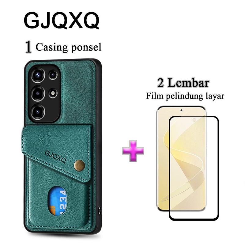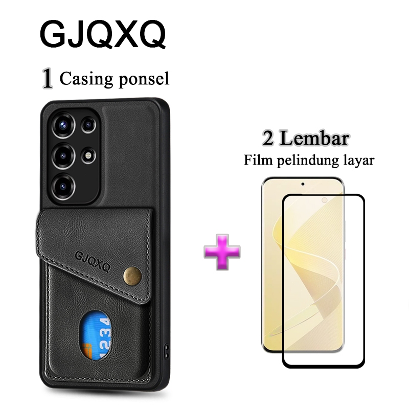 GJQXQ 2 In 1 Casing For ITEL S26 Ultra Case Kulit Premium Dengan Slot Kartu Kredit Dompet Film Keramik Layar Protektif