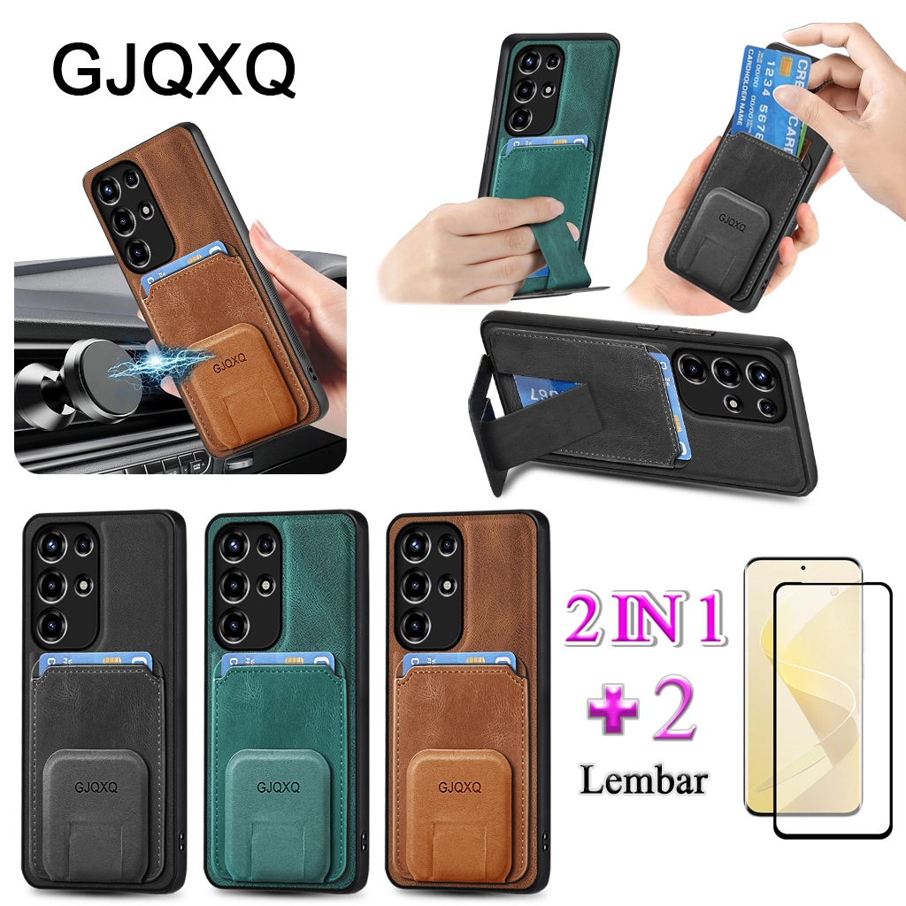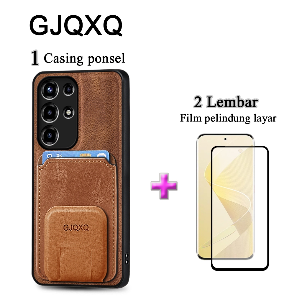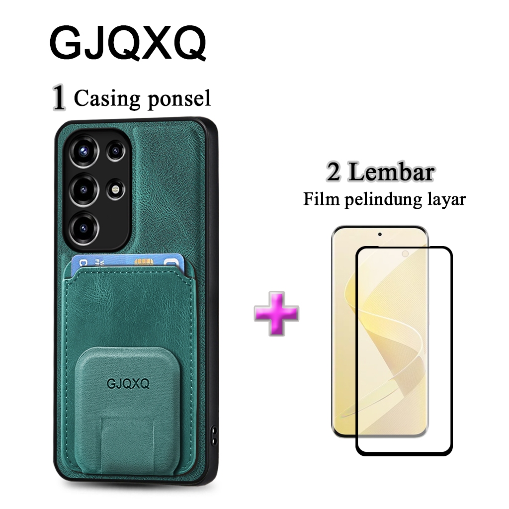 GJQXQ 2 In 1 Casing For ITEL S26 Ultra Dengan Bracket Deformasi Dan Slot Kartu Kredit Dompet Film Keramik Layar Protektif