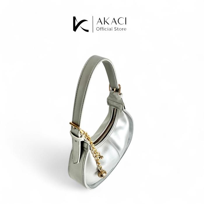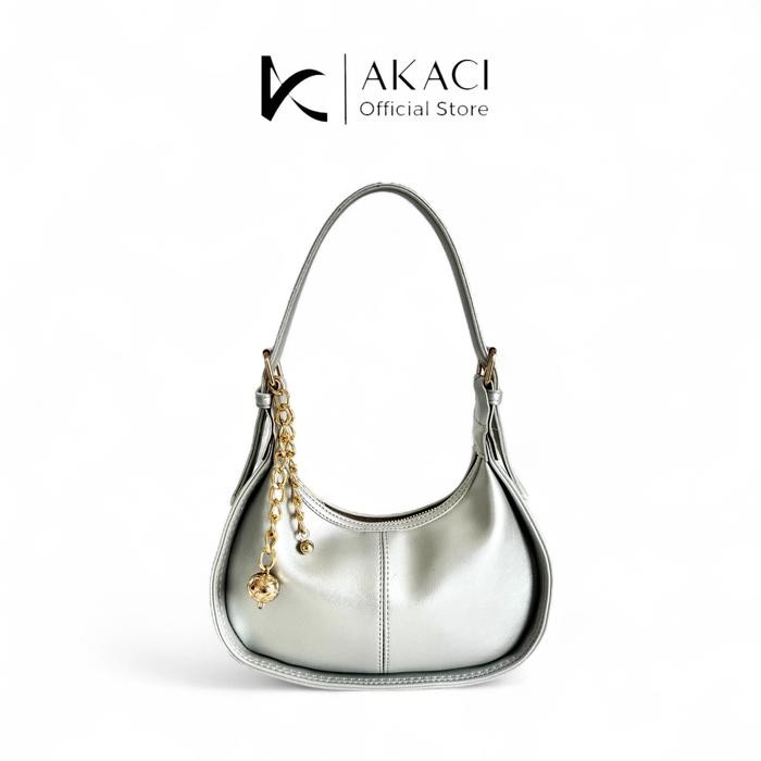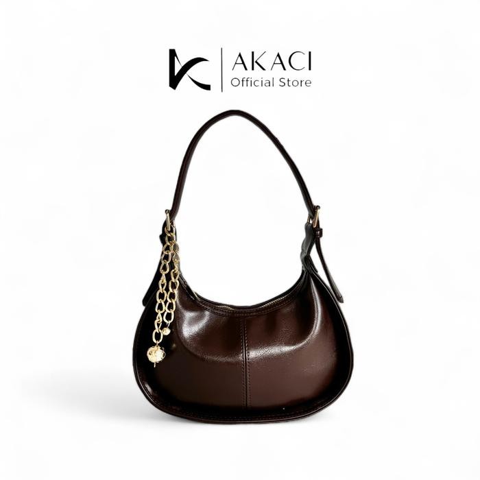 Shoulder bag wanita ARUNA Akaci 09-8398 Bahan lexus 1 ruang Terbaru Half moon bag murah mewah tas cewek lucu simpel polos tas pesta Selempang - HITAM