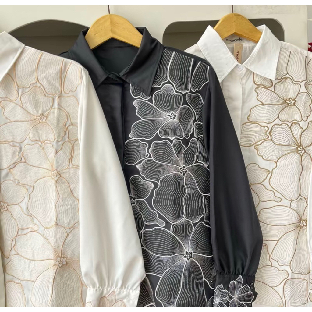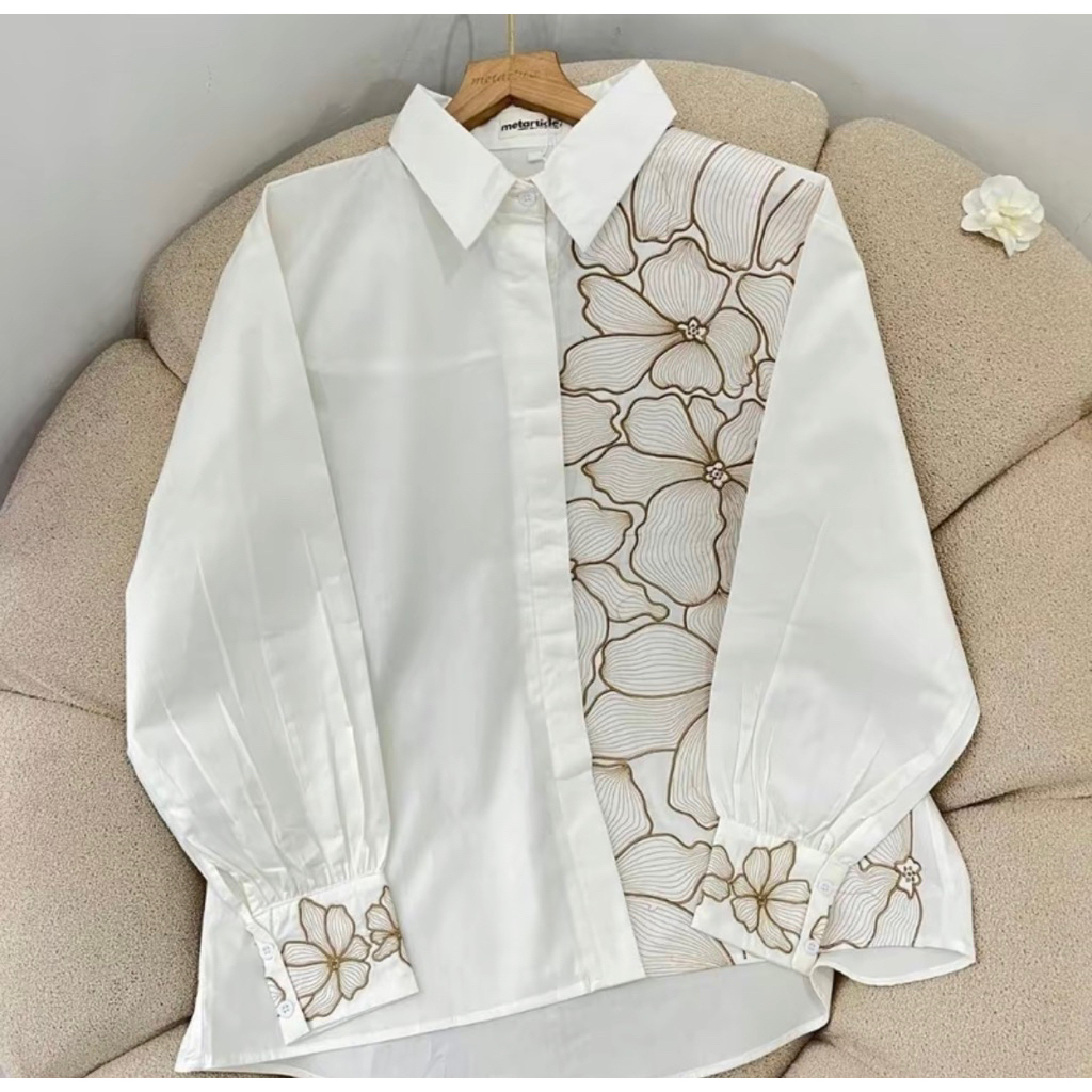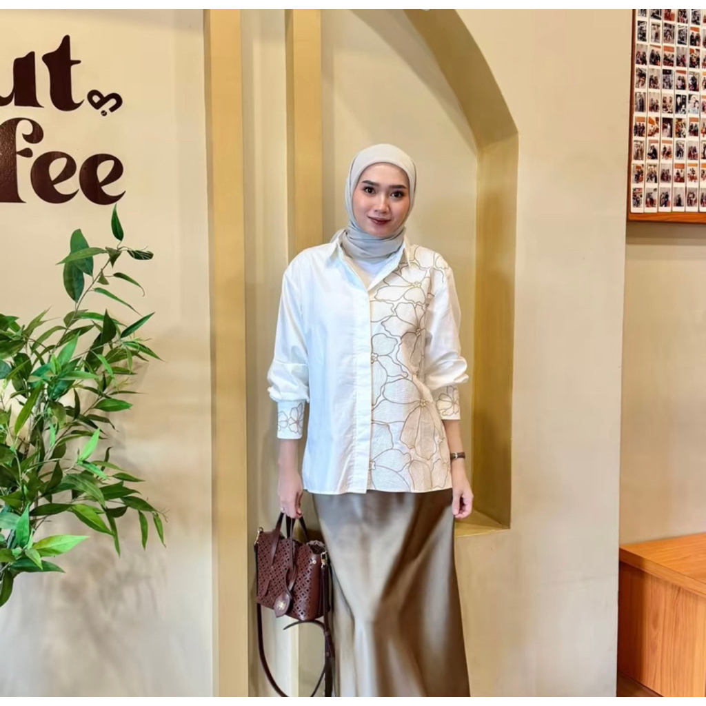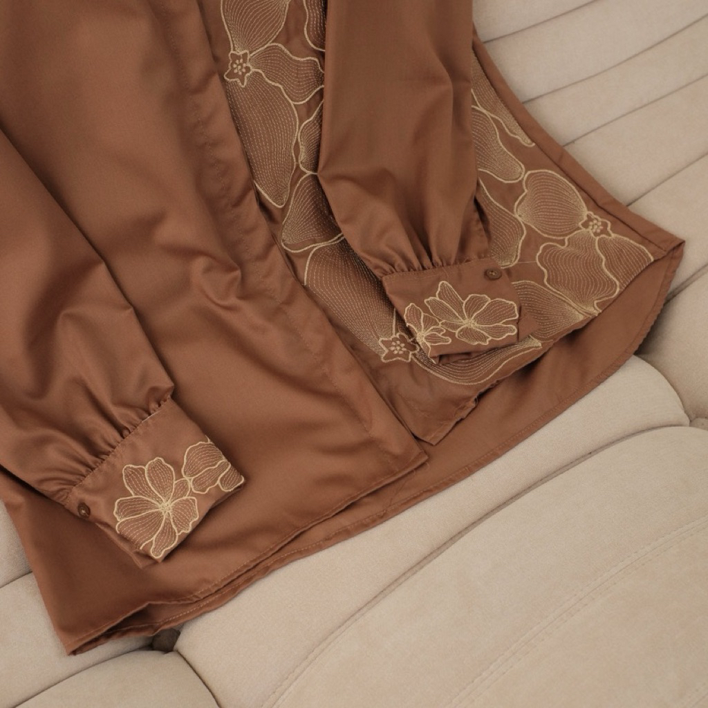 MEGA PROMO LUISA SHIRT ATASAN WANITA BORDIR PREMIUM KEMEJA WANITA AESTHETIC EARTH TONE ATASAN BORDIR