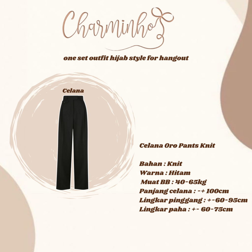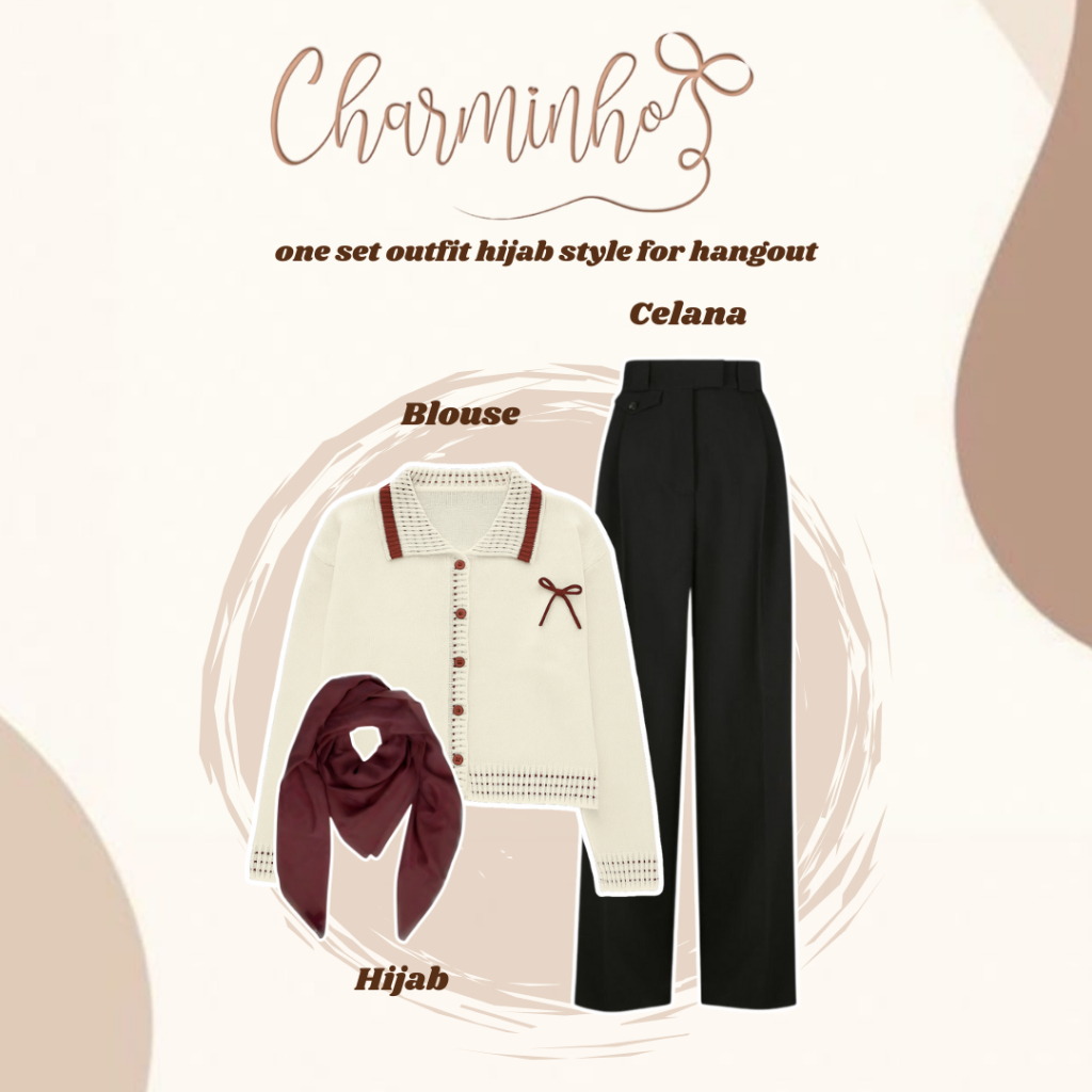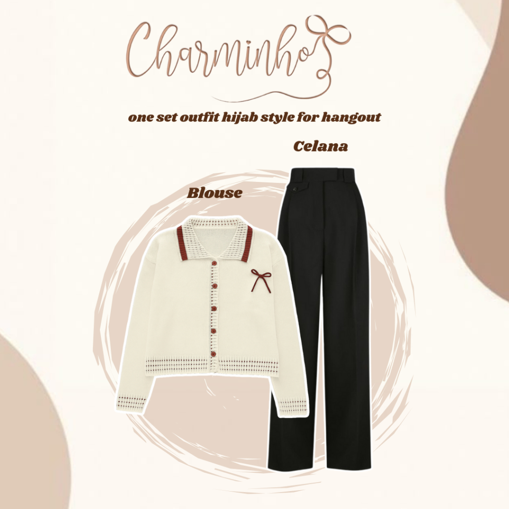 One Set OOTD Hijab Style (AMANDA BLOUSE RAJUT | CELANA ORO PANTS | HIJAB BELLA SQUARE) Outfit Korean Style - SW039