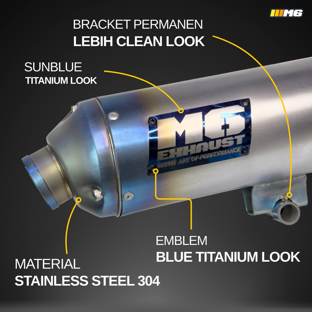 knalpot M6 racing exhaust AEROX sunblue titanium look