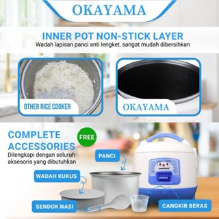 OKAYAMA 1 Liter Rice Cooker Mini Penanak Nasi Magicom 3 in 1 OK-105