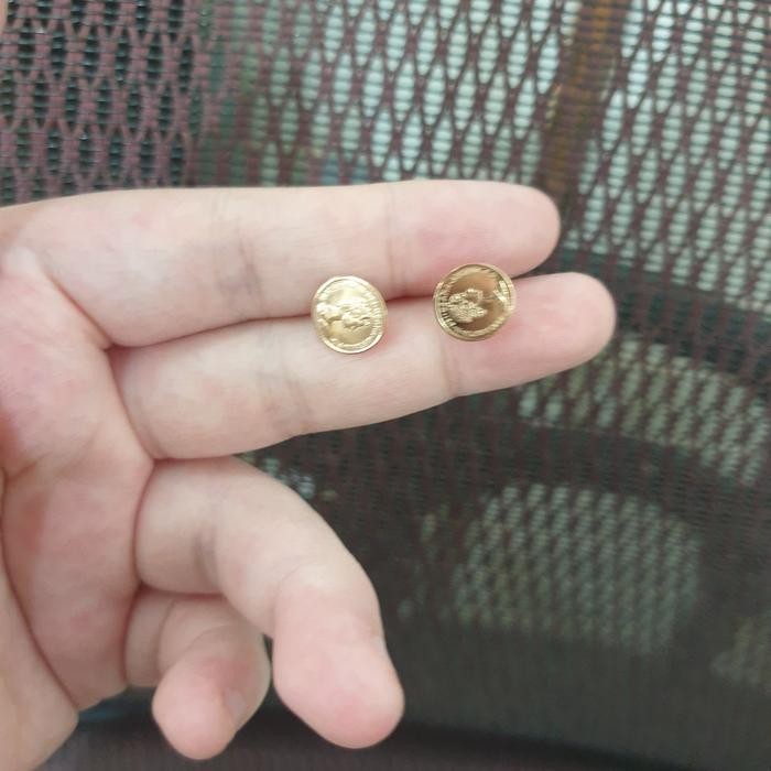 Giwang anting tusuk tindik stud koin gold elizabeth emas asli 375