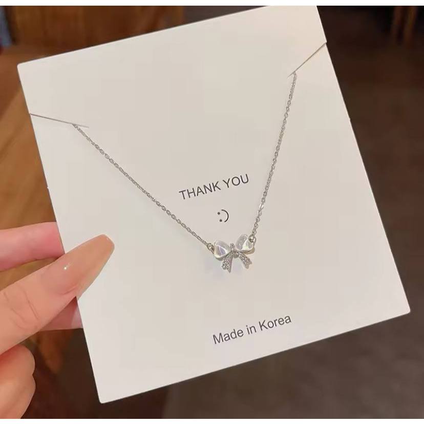 Kalung Titanium Liontin Wanita Titanium Butterfly dengan Sentuhan Elegan Berlian Korea Style