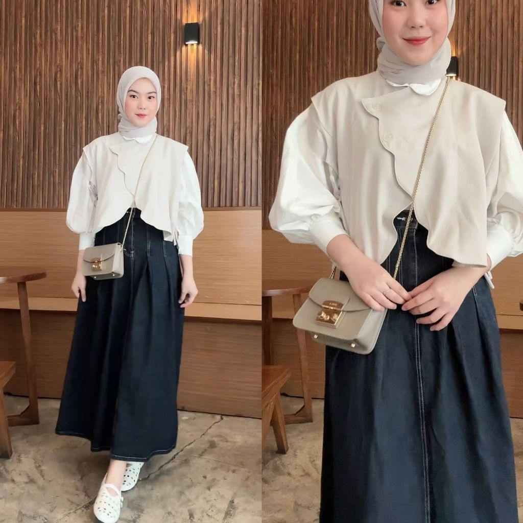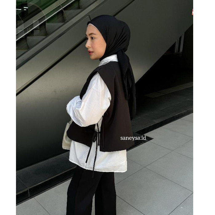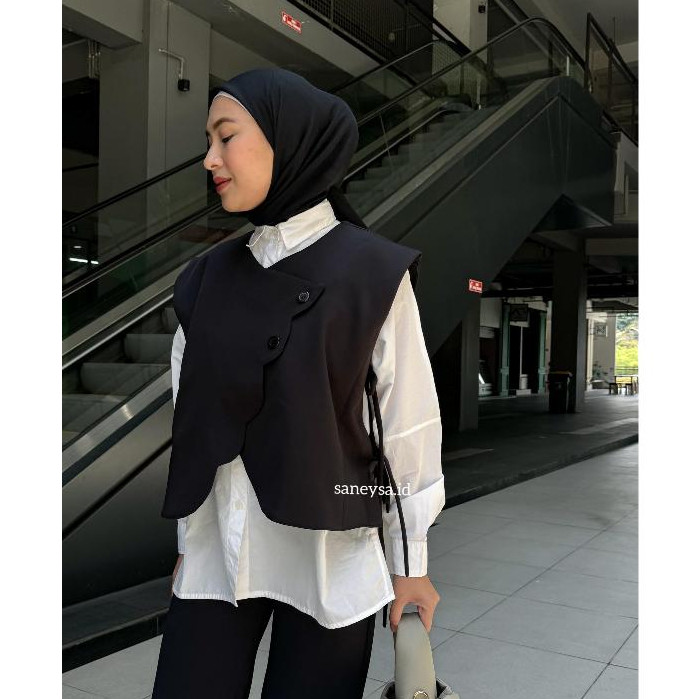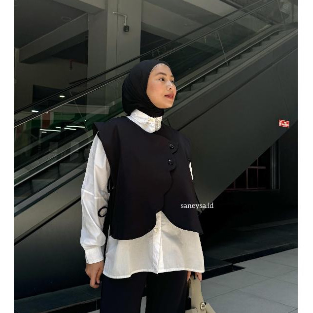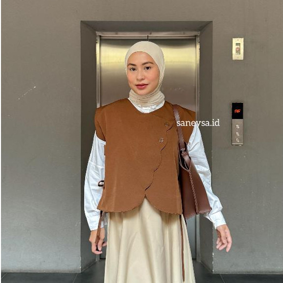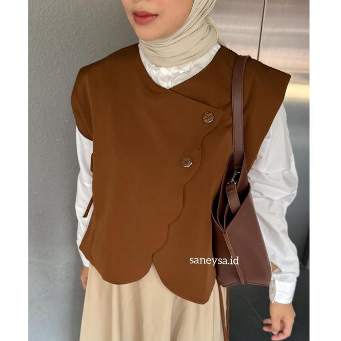 SANEYSA - Celia Vest Rompi Outer Wanita - Vest Vintage - Vest Korean Style - Outer Wanita - Atasan Wanita Kekinian - Cardigan Vest - Blazer Wanita - Blouse Wanita - Outer Tanpa Lengan - Rompi Wanita - Sleeveless Top - Coquette Top - Outerwear Basic Top