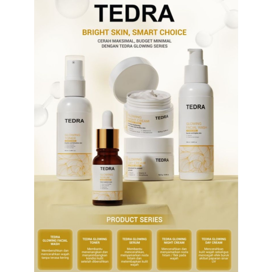 1 Set Cerah Glowing Bundle all in 1 5in1-Facial Wash+Toner+Day Cream+Night Cream+Serum - skincare paket pembersih perawatan kulit mencerahkan warna kulit pelembab wajah Tedra