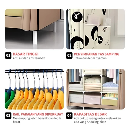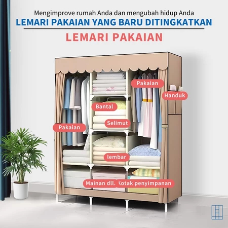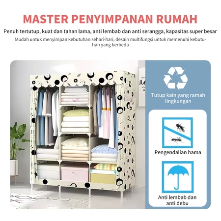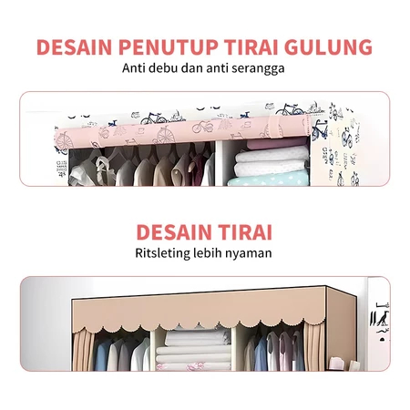 Lemari Portable Pakaian Rak Baju Susun Rak Baju Estetik Kamar Minimalis