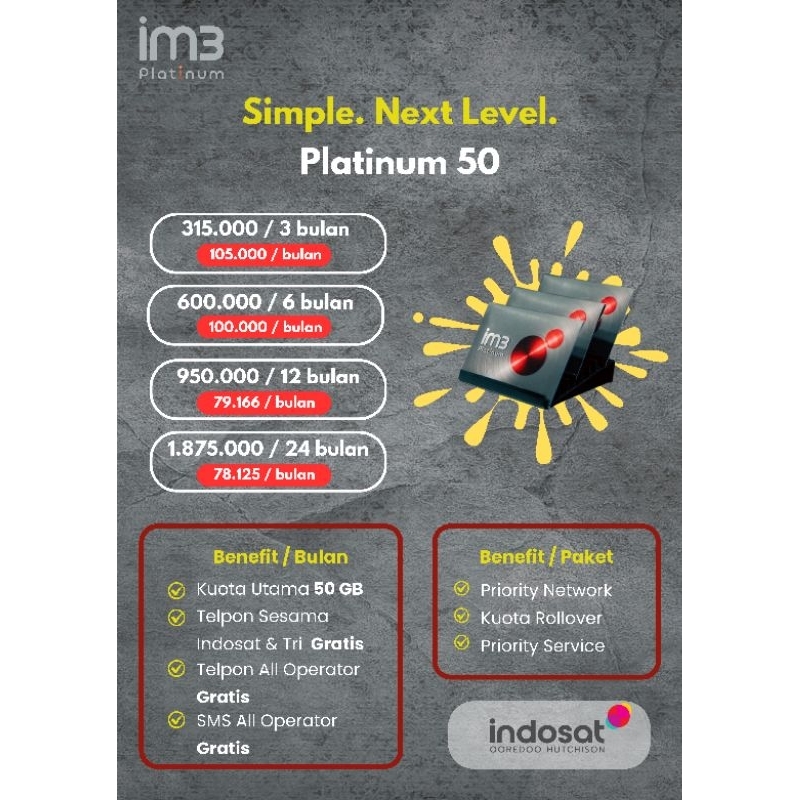 [PLATINUM 50] PAKET KUOTA IM3 PLATINUM, KUOTA UTAMA 50GB