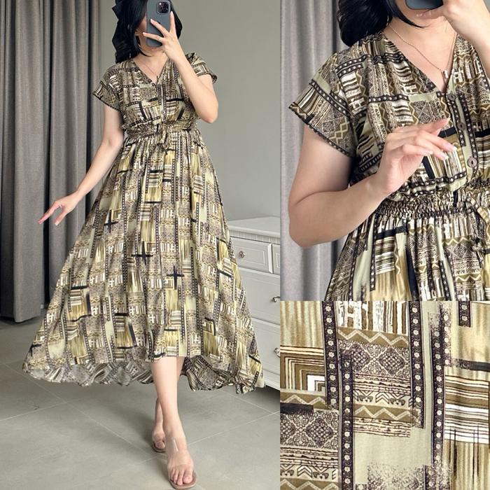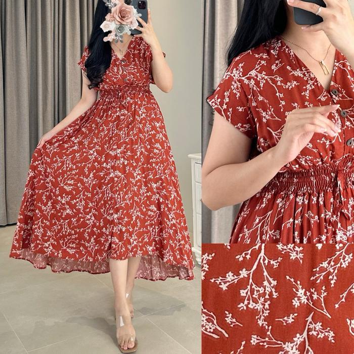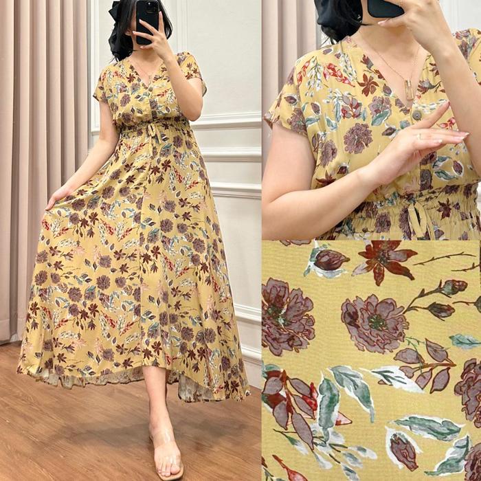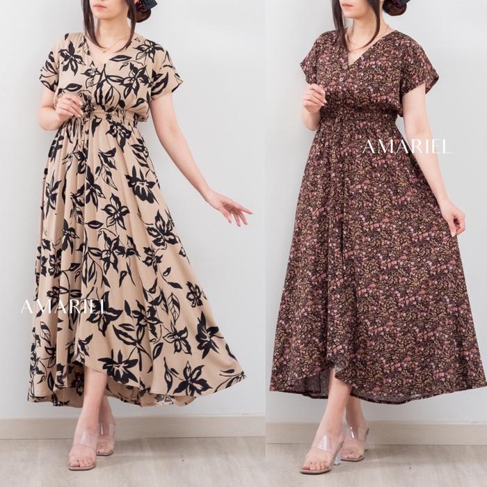Best Seller Amariel Belle Flowy Dress Panjang Daster Karet Serut Nyaman Busui Bumil Friendly Rayon