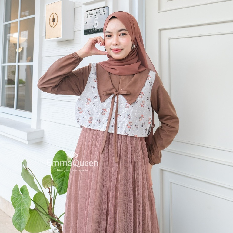 Emmaqueen Raysha Dress Gamis Kondangan Motif Tile Syar'i