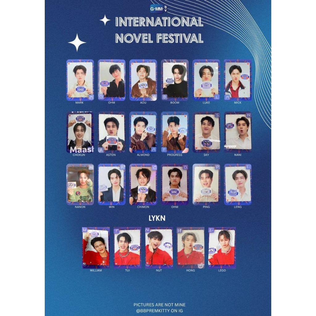 [OFFICIAL] Collectible Card From GMMTV MOOD QUEST INTERNATIONAL NOVEL FESTIVAL 2025 (LYKN, POND, PHUWIN, NANON, GEMINI, SEA TAWINAN, JOONG, DUNK, WINNY, SATANG, EST, SINGTO, OFF, FIRST, FORCE, AOU, BOOM, GREAT, INN, ALMOND, PROGRESS, JUNE, MEWNICH)