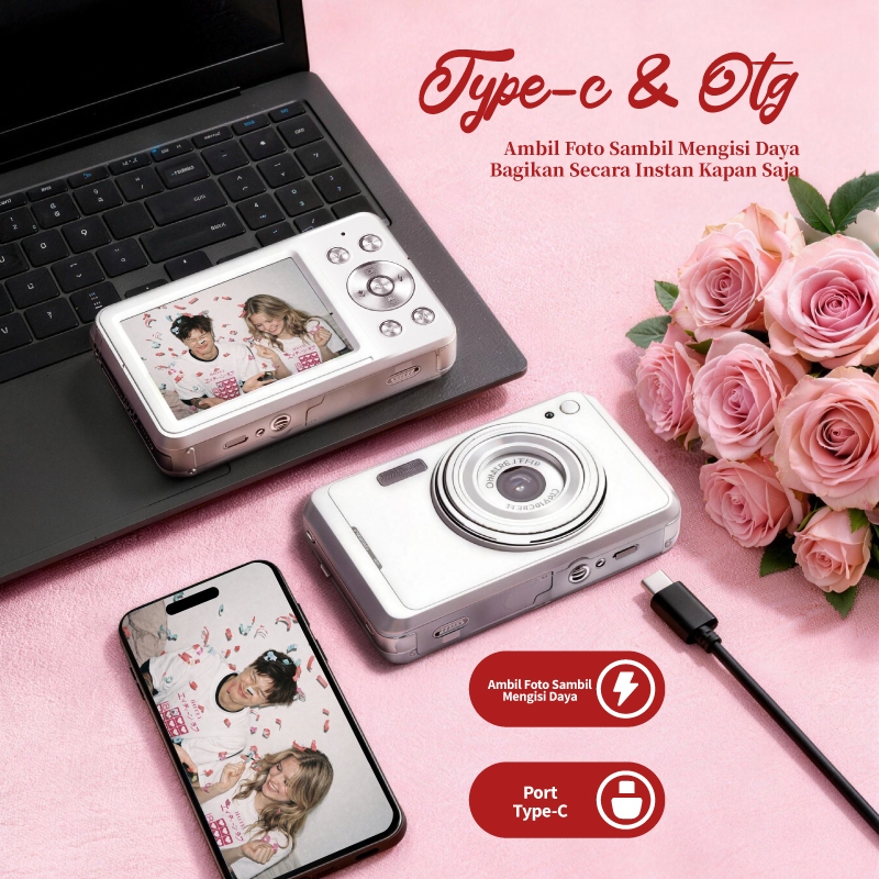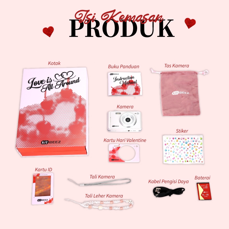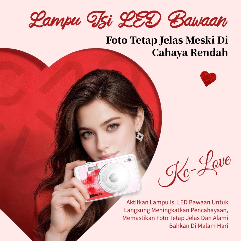 KiTBEEZ KC-LOVE Digicam 64MP 16X Zoom 1080P Compact Camera with Flash Special Valentine's Day Gift
