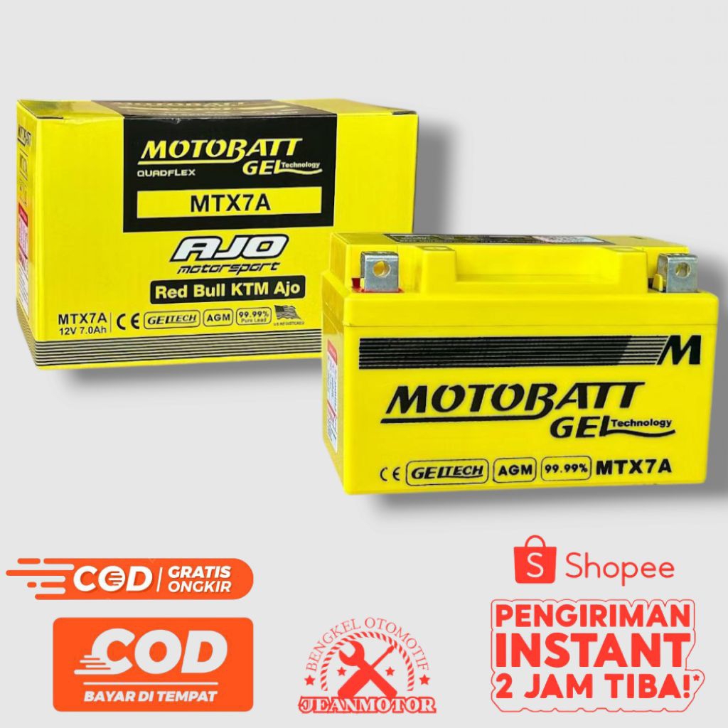 Aki Motobatt MTX7A Gel 12V 7Ah – Cocok untuk Ninja 250, Pulsar 200NS, CB400, Minerva, Kymco , Vespa