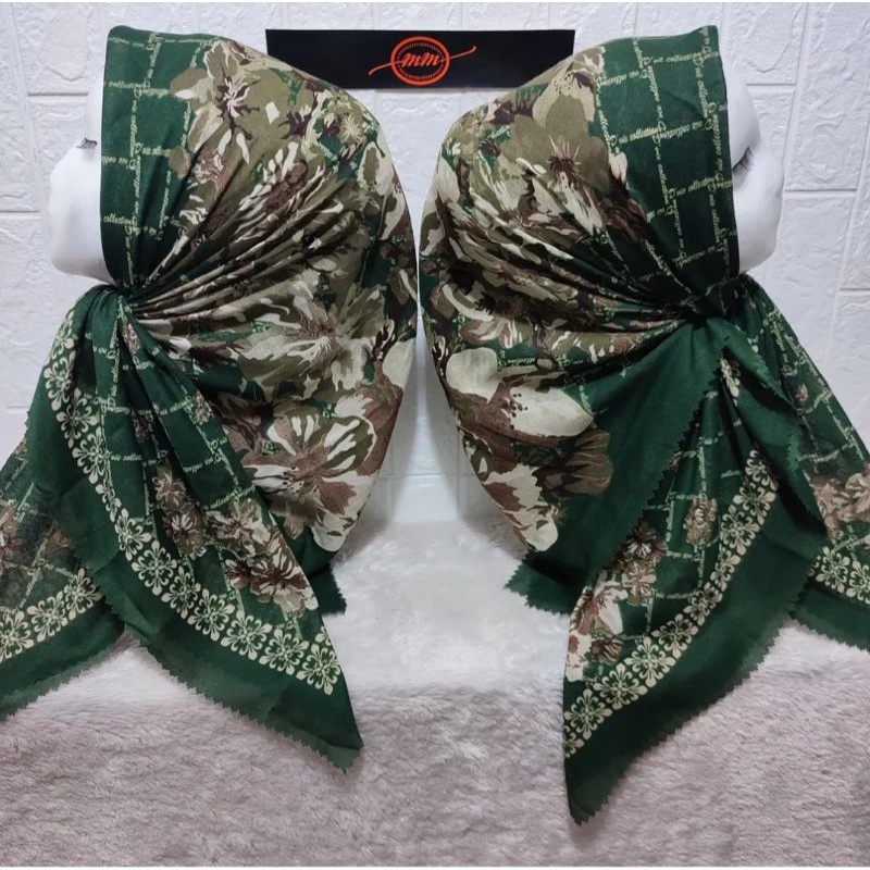 HIJAB SEGI EMPAT VOAL MOTIF LAATEEFA BUNGA HIJAU KERUDUNG JILBAB MURAH
