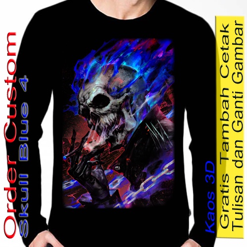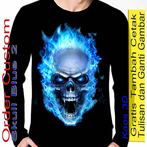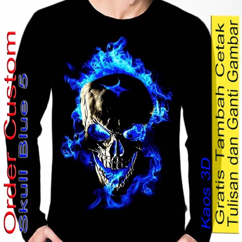 Kaos Lengan Panjang Pria Warna Hitam skull / Baju Tengkorak Skull Blue