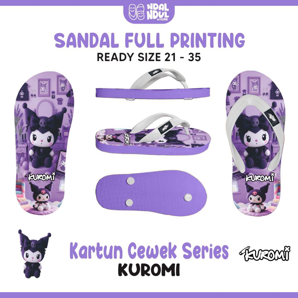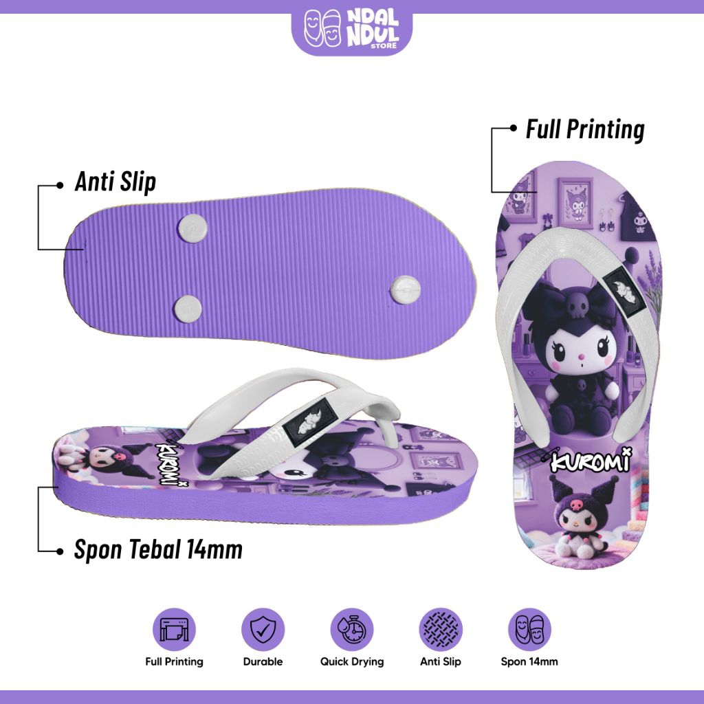 Sandal Jepit Anak Tema Kartun Cewek Series / KUROMI / Sandal Full Printing / Fashion Anak