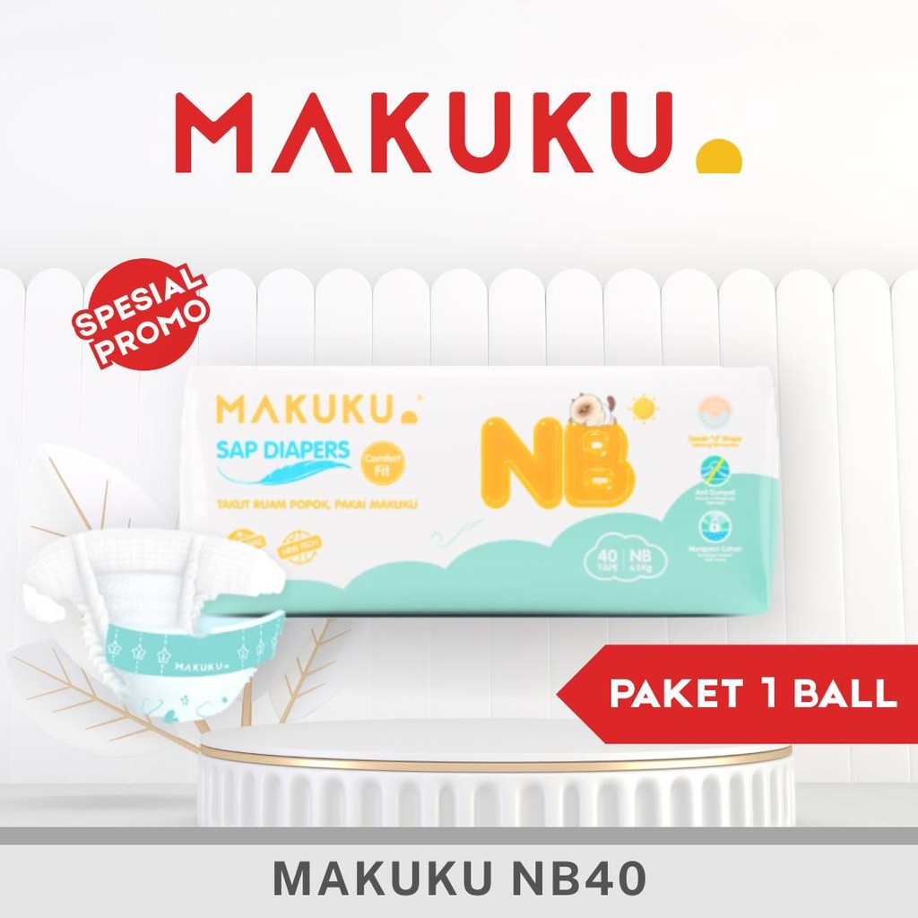 Makuku Comfort Fit Popok Diapers Bayi NBs40 Perekat
