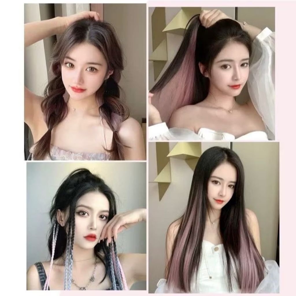 {PK} Jepit Rambut Palsu Lurus Untuk Pesta / Jepitan Pemanjang rambut warna warni / Wig rambut palsu wanita / Hair Clip Wig Colour Highlight Rambut Sambung Palsu Extension Wanita Jepit Lurus / Jepitan Wig Warna Warni