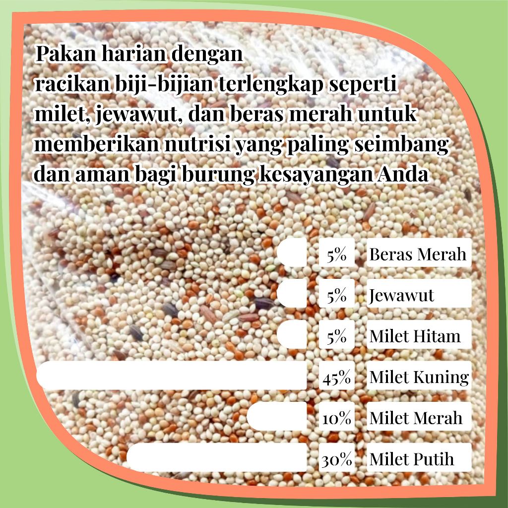 Livvicstore Pakan Burung Perkutut 1Kg Supaya Gacor Kiloan Beras Merah Jewawut Milet Hitam Kuning
