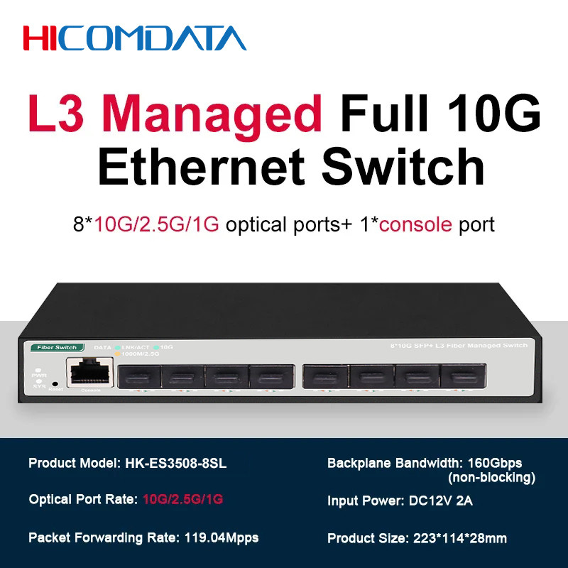 8 10-gigabit SFP+ Ports L3 Managed Network Switch Support DHCP and Dynamic Routing Support VLAN