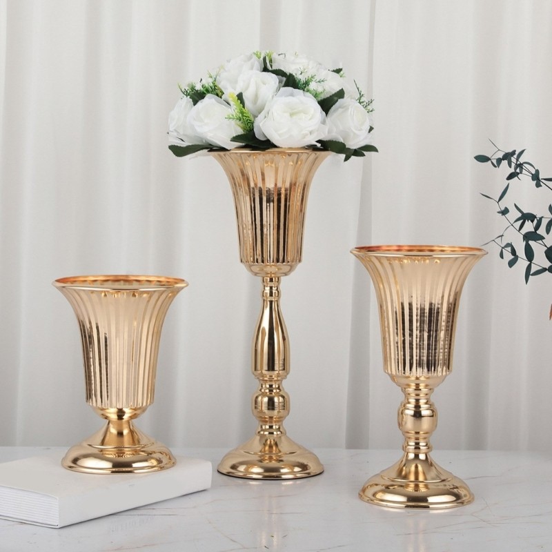 20cm 27cm 37cm Metal Trumpet Vase Home Restaurant Decoration Europe Rose Gold Color Flower Holder