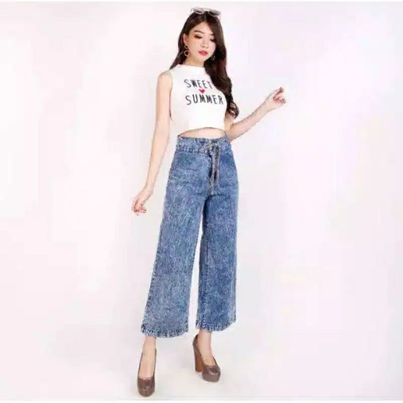 Highwaist Kulot Jeans Wanita Loose