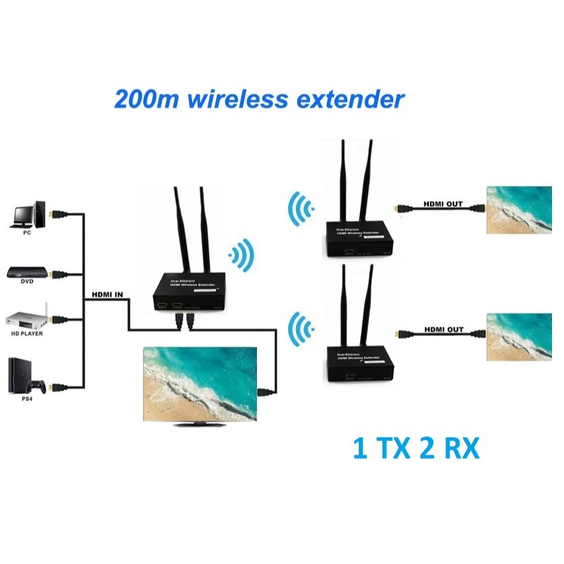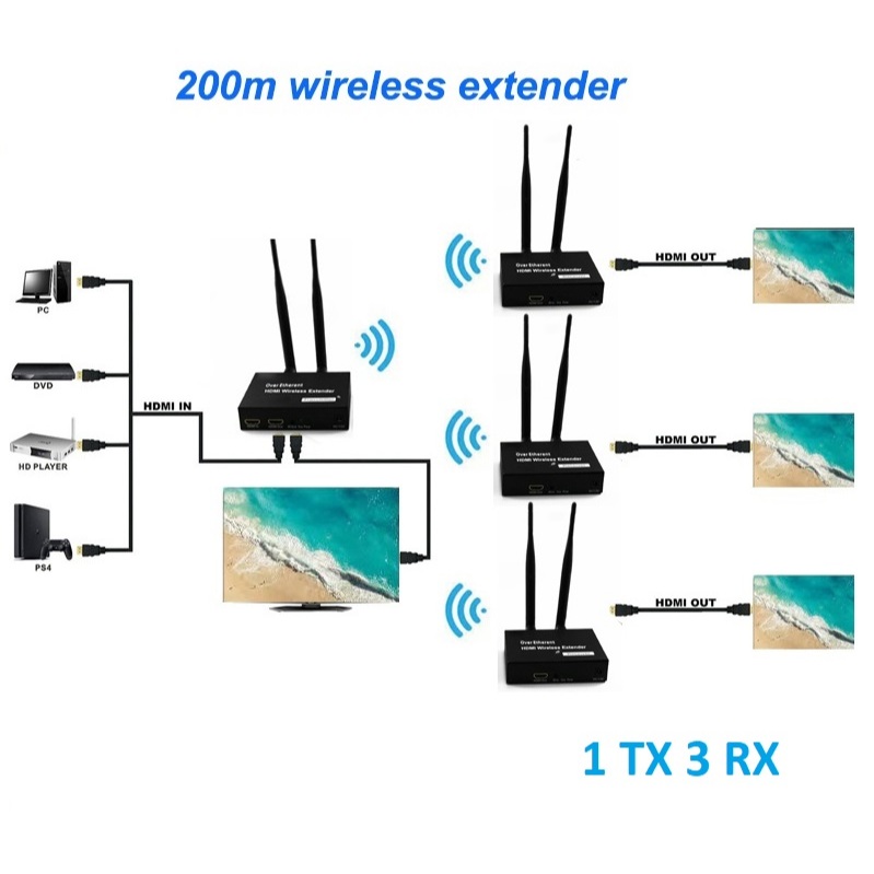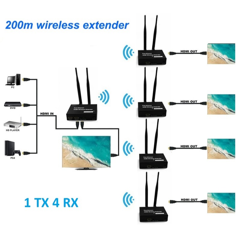 HDMI KVM Extender Wireless 200m Full HD Video Transmitter up to 4 Receiver
