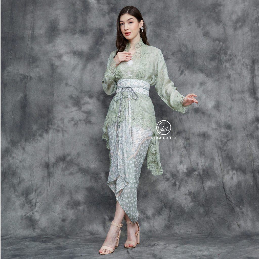 PROMO TERBARU AIRA BATIK _ Yumna Set 3in1 Kebaya One Set I Outer Brukat Lace Lilit Batik Free Obi