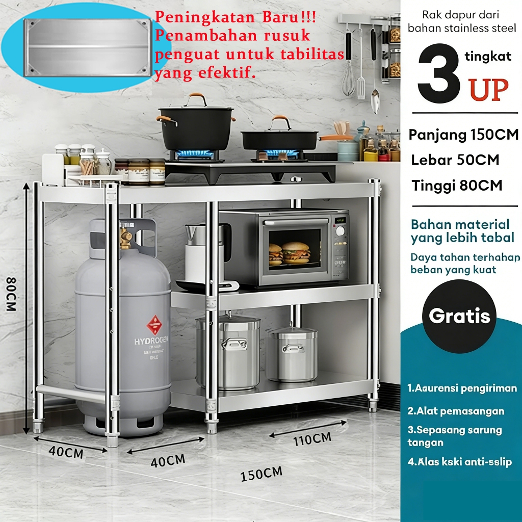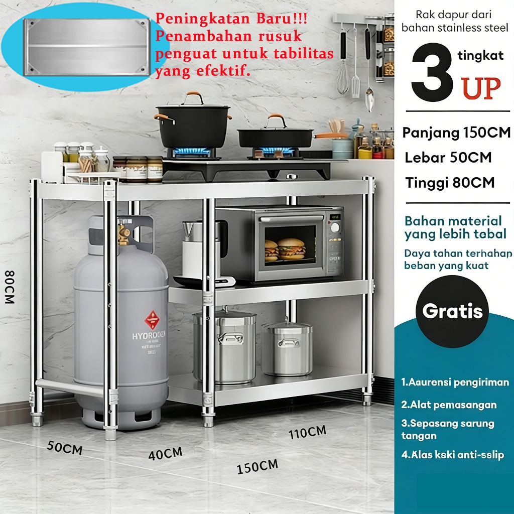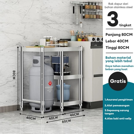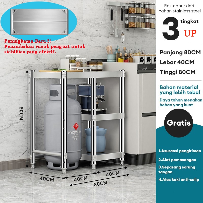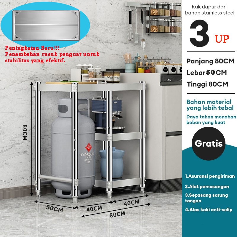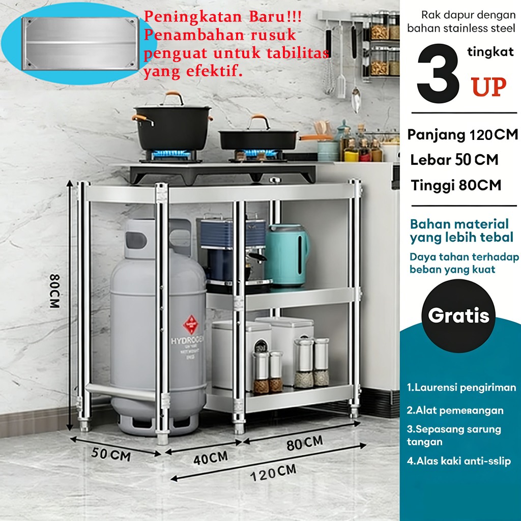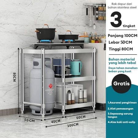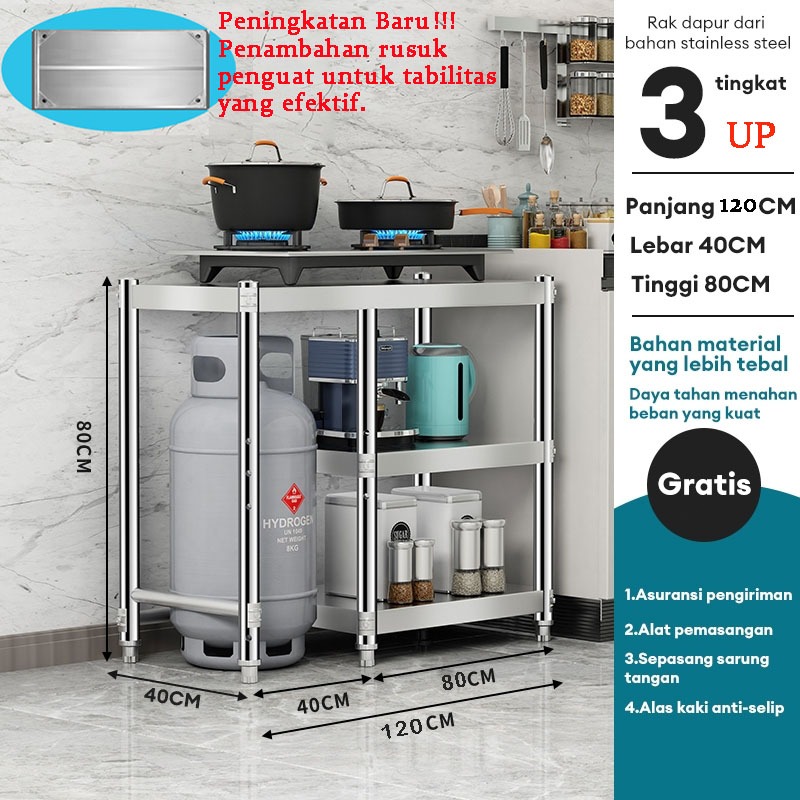 Meja Kompor Stainless Steel Meja kompor 2 tungku Rak Kompor Meja Kompor Gas 3 Tungku Rak dapur Minimalis Serbaguna