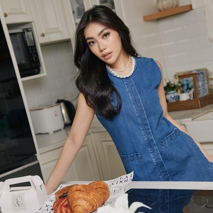 LADOUCE x Ashley Michelle - Daiquiri Mini Denim Dress Dress Jeans Wanita