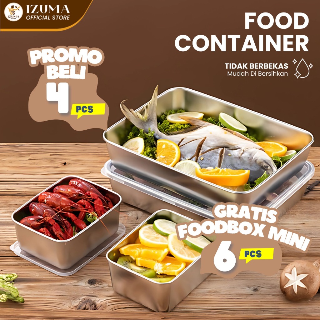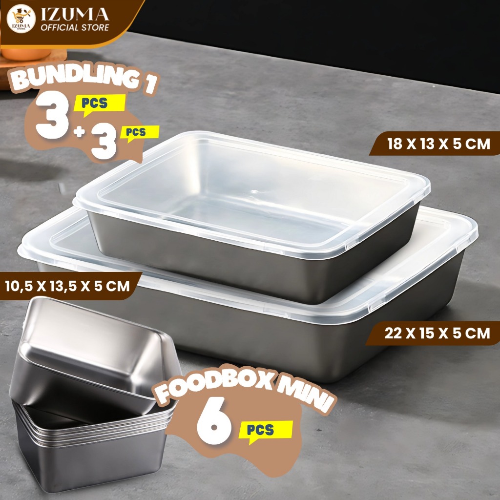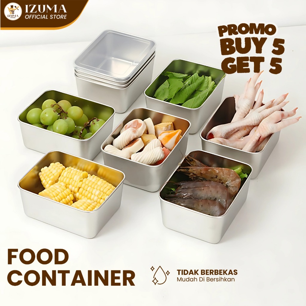 Ephraimseller_ Izuma Food Box Bundling 10Pcs Stainless Steel Dah Makanan Microve Food Grade + Tutup