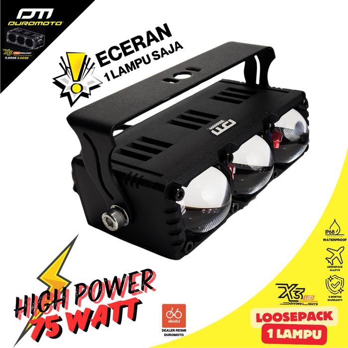 DUROMOTO X3 Eceran 1 Lampu X 3 Lampu Mini Laser Projie LED 3 Mata Motor Touring ADV 75 WATT
