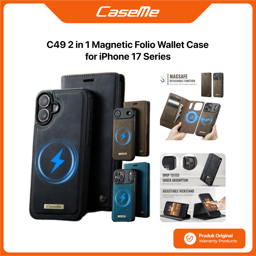 Case iPhone 17 Pro Max Air SNAPFIT 2 in 1 Magnetic MagSafe Folio Wallet Kickstand Stand Buka Tutup Slot Kartu Protective Premium Casing