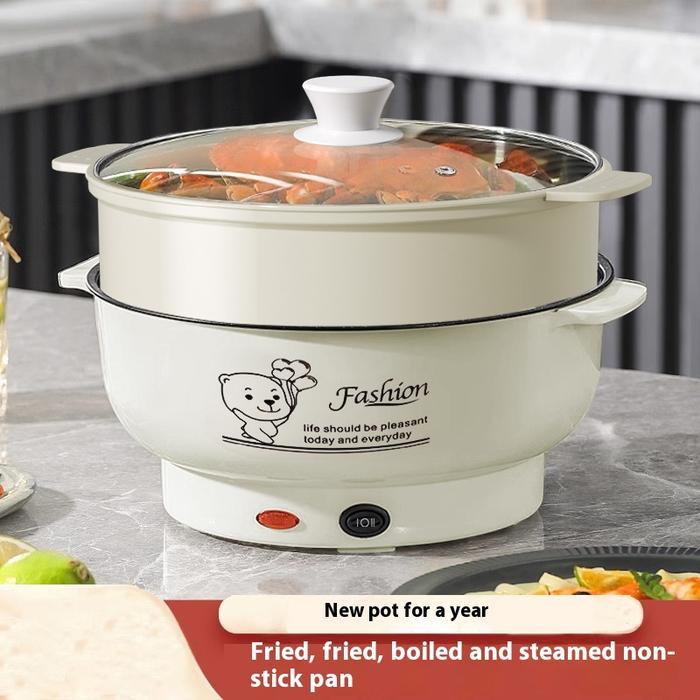 New Panci Listrik Multifungsi Anti Lengket Hitam Free Kukusan Steamer Plastik Lapis Keramik Teflon