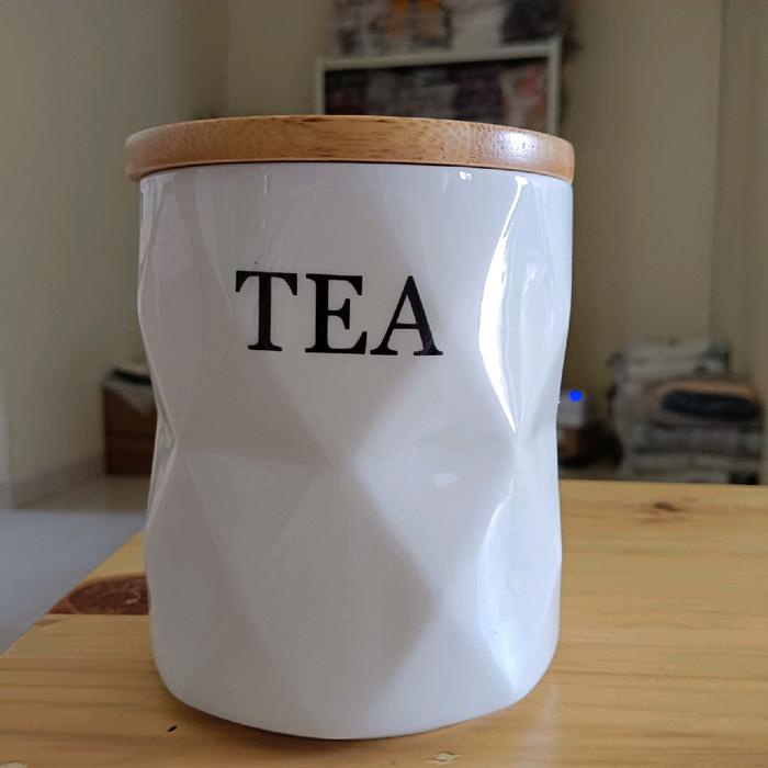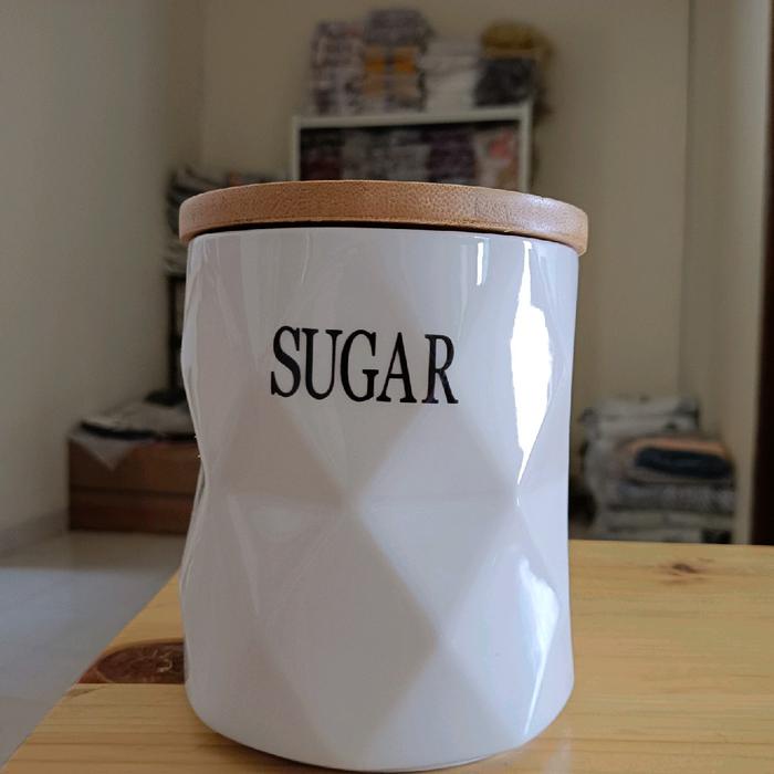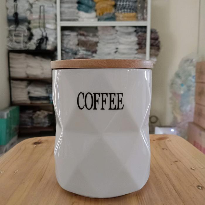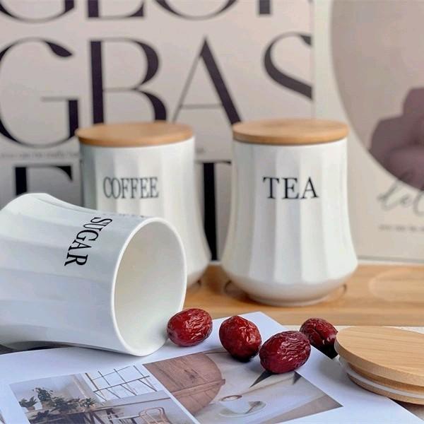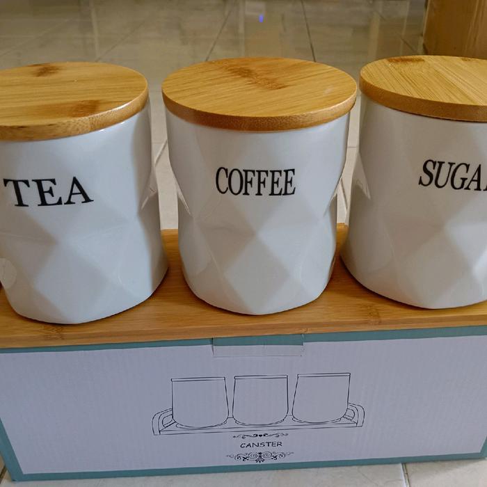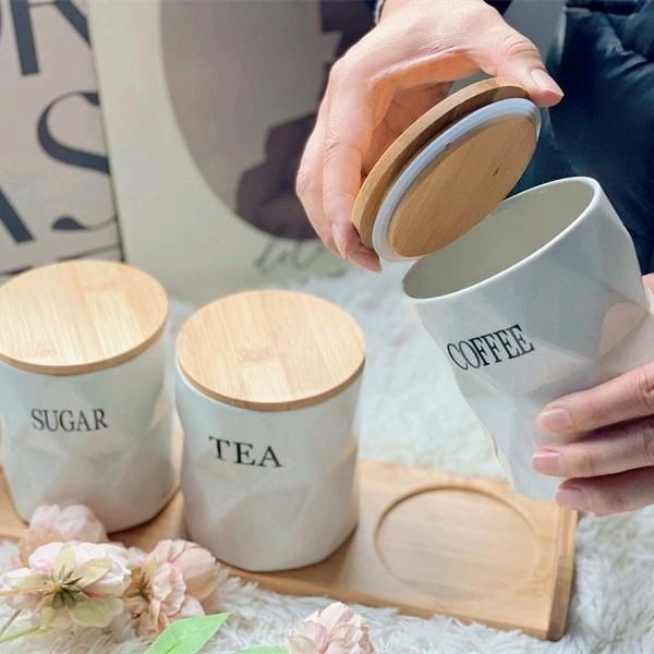 siapkirim- Set Toples Gula Kopi Teh keramik tatakan kayu estetik Set wadah teh kopi gula keramik