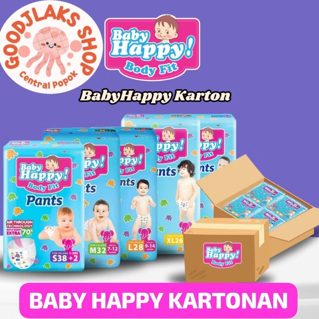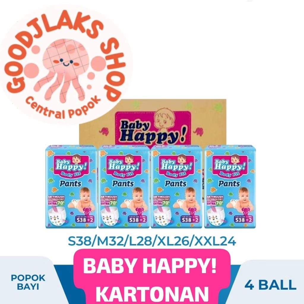 (1KARTON) Baby Happy Pants S38 M32 L28 XL26 XXL24 - Kemasan Baru Isi 4Ball