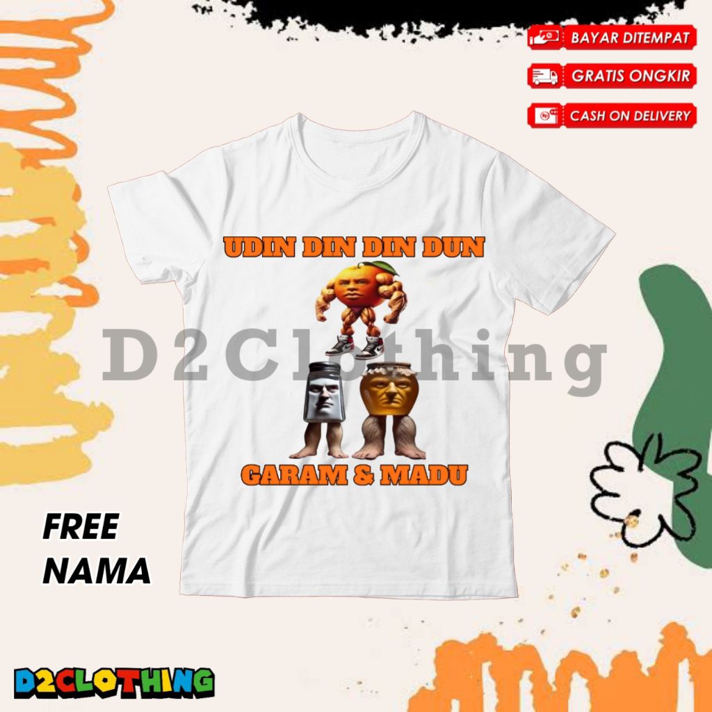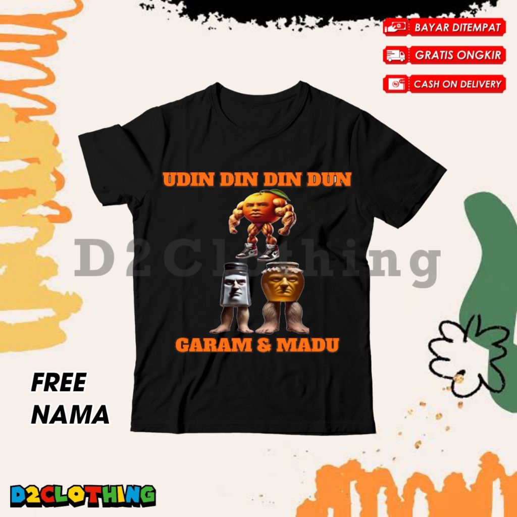 (BISA COD) Kaos Anak Laki - Laki dan Perempuan Gambar Anomali Udin Din Din Dun X Garamaram Madu dung dung - Baju Anak / Pakaian Distro Anak Motif Udin Din Dun Dan Garam Dan Madu Brainrot Usia 3-12 Tahun UNISEX FASHION FREE NAMA